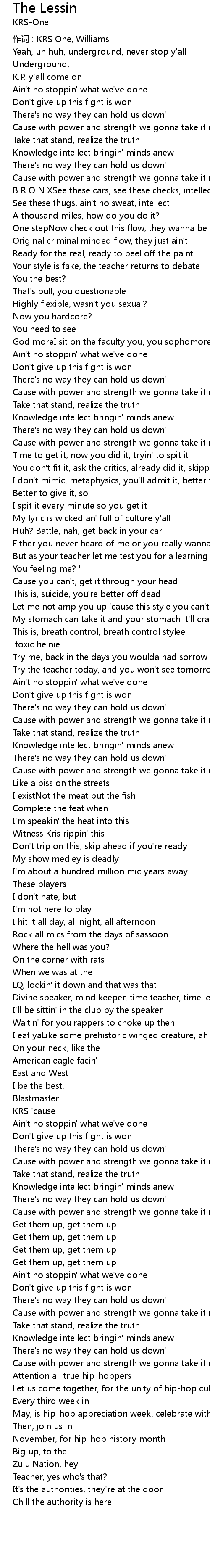 | 作词 : KRS One, Williams | |