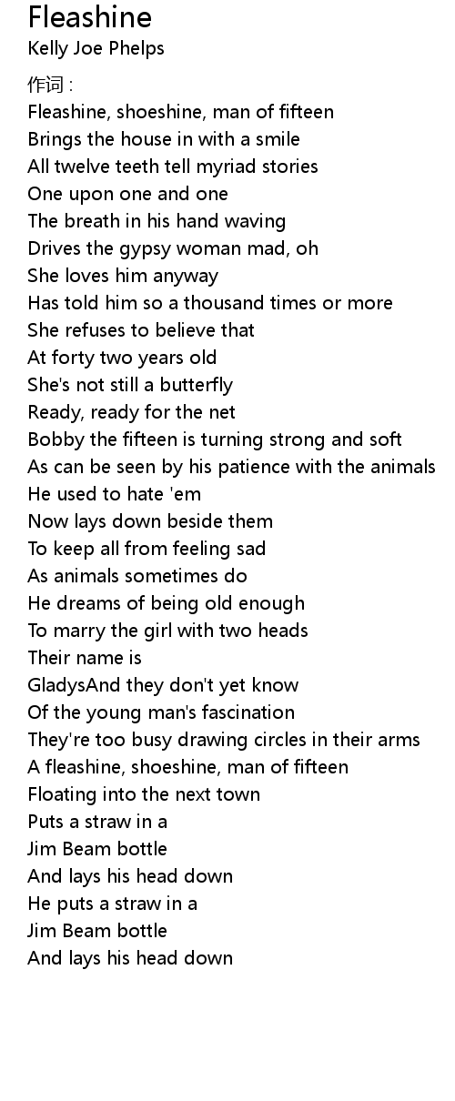 | Fleashine, shoeshine, man of fifteen | |