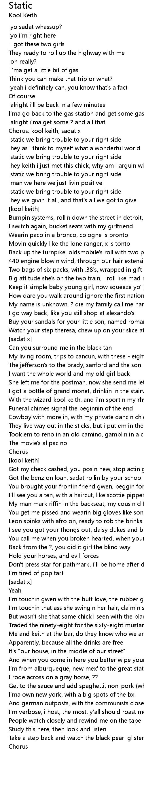 Chorus: kool keith, sadat x |