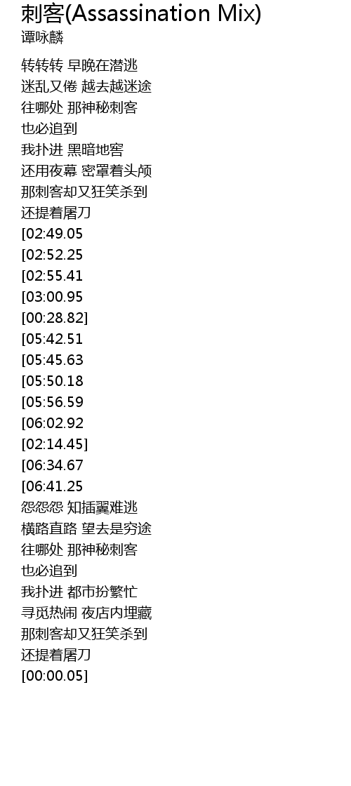 | [06:53.82][06:34.67] | 似刺客那刺刀 任务是直插心里 |