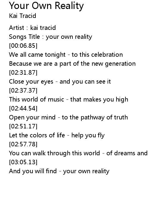 | [00:02.98] | Songs Title: your own reality |