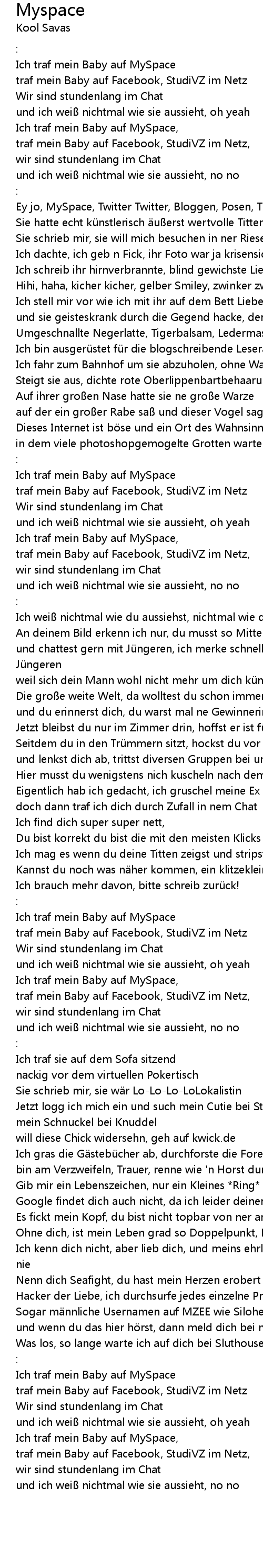 | Ich traf mein Baby auf MySpace, | |