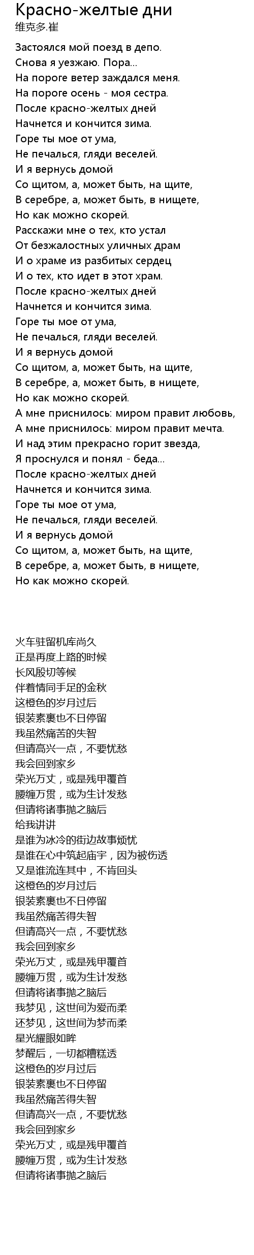 | 歌曲 | Красно-желтые дни |