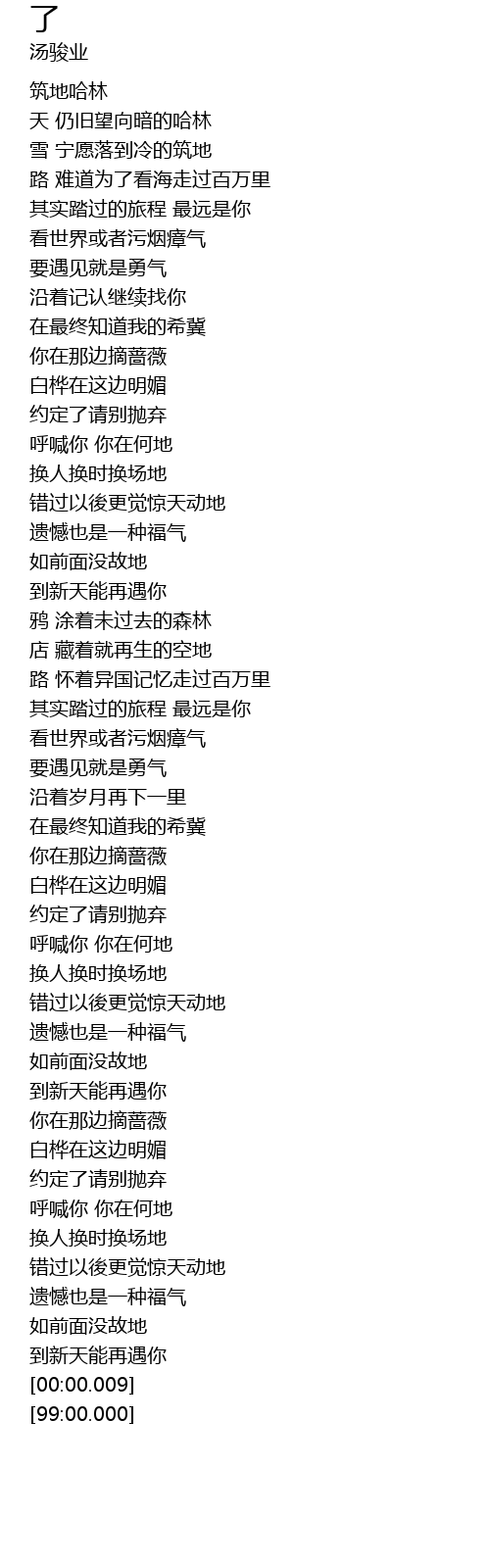 | [00:46.52] | 其实踏过的旅程 最远是你 |