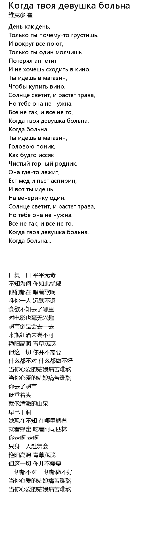 | 歌曲 | Когда твоя девушка больна |