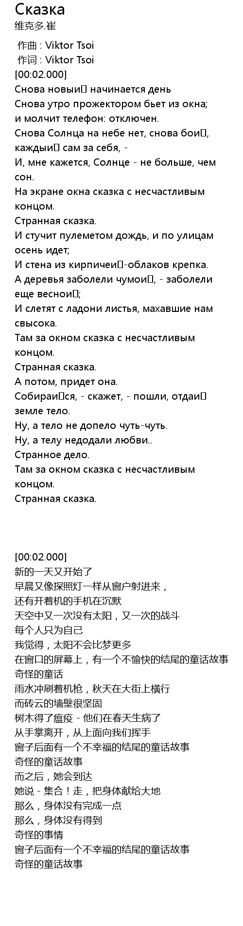 | [00:00.00] | 作曲 : Viktor Tsoi |