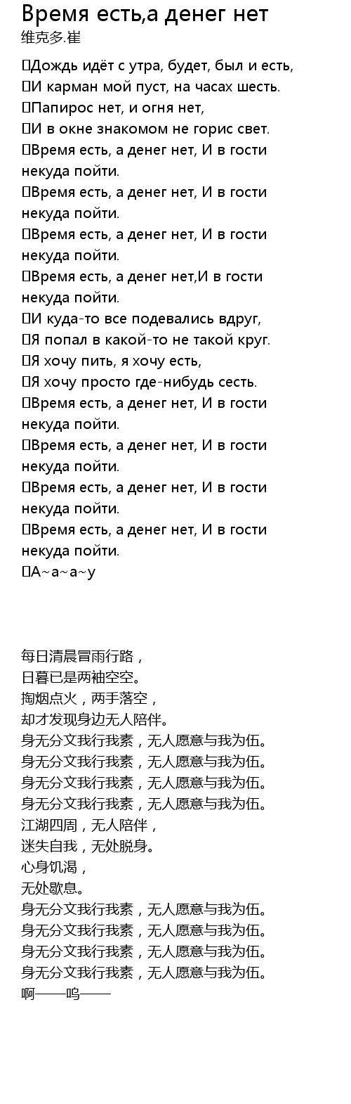 | [01:53] | Время есть, а денег нет, И в гости некуда пойти. |