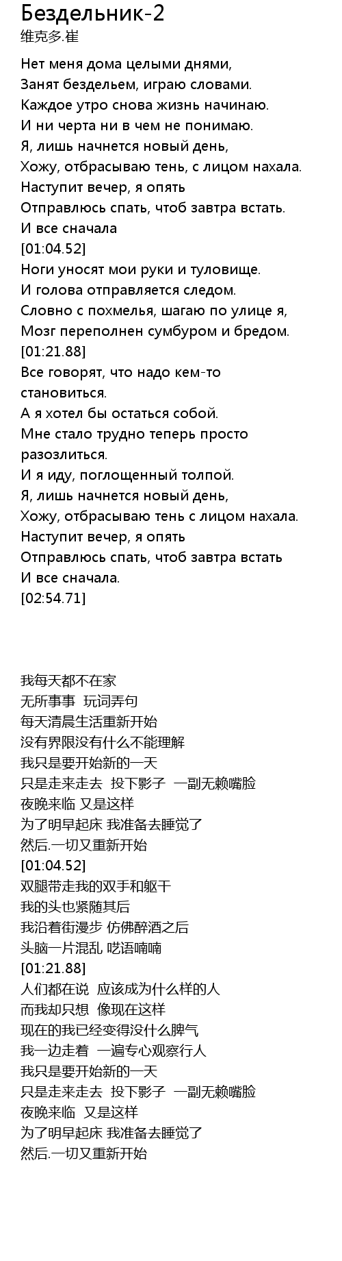 | [02:46.68] | Отправлюсь спать, чтоб завтра встать |