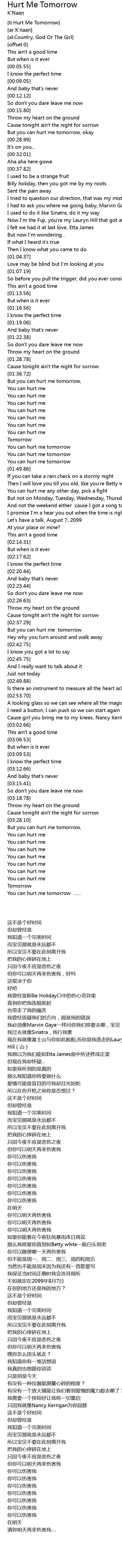 [ti:Hurt Me Tomorrow] |