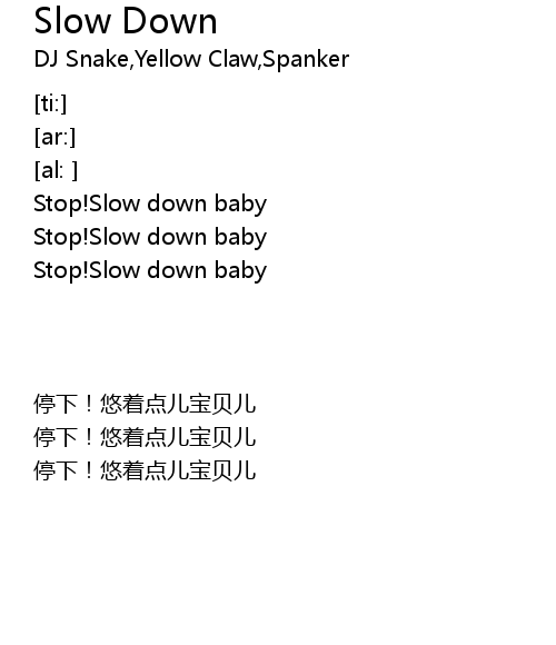 | [00:45.22] | Stop! Slow down baby |