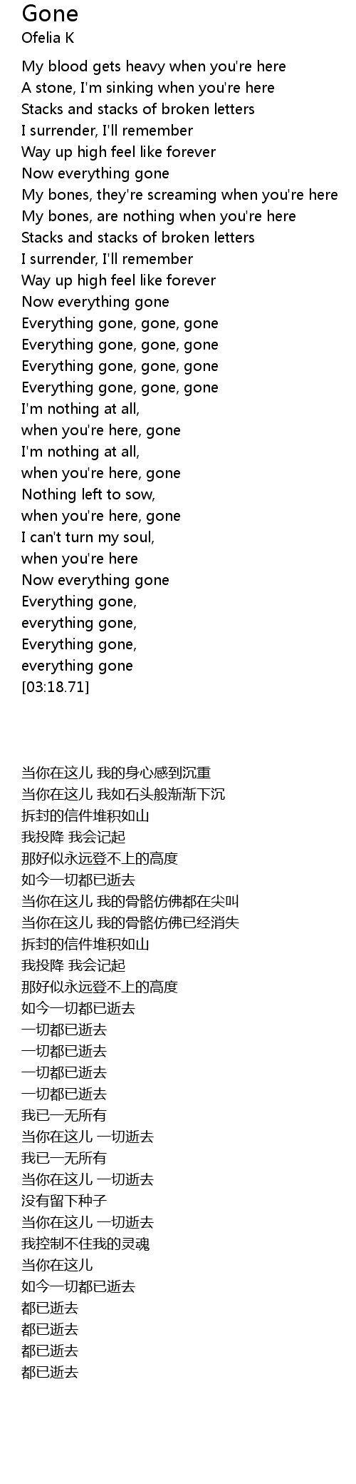 Everything gone, gone, gone |