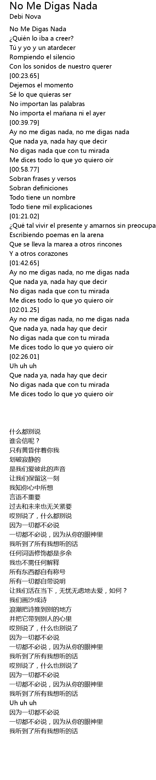 | [00:03.15] | No Me Digas Nada |