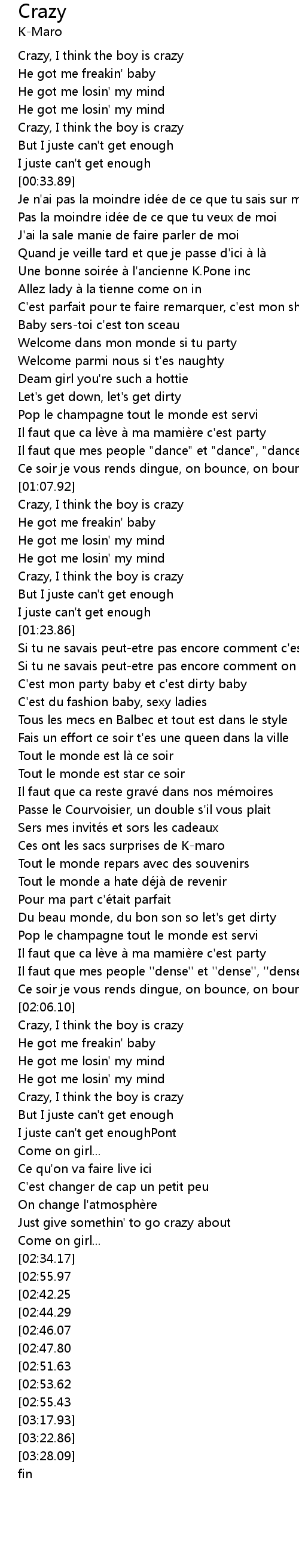 | [02:39.48][02:55.97] | Crazy, I think the boy is crazy |