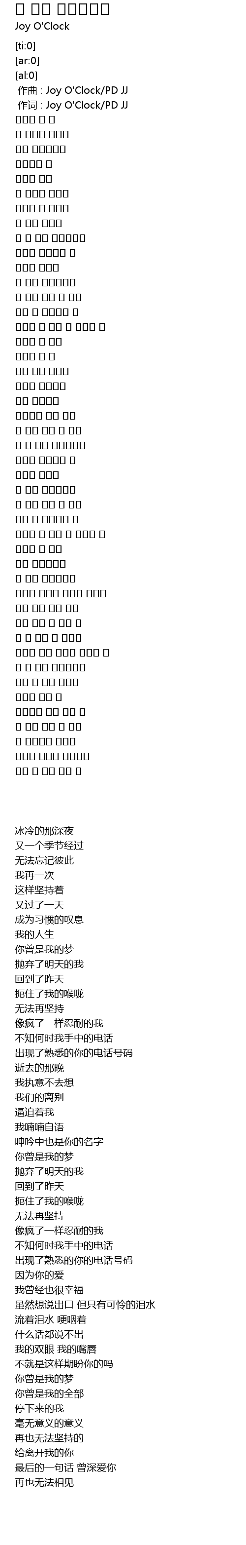 | [00:00.00] | 作曲 : Joy O'Clock/PD JJ |