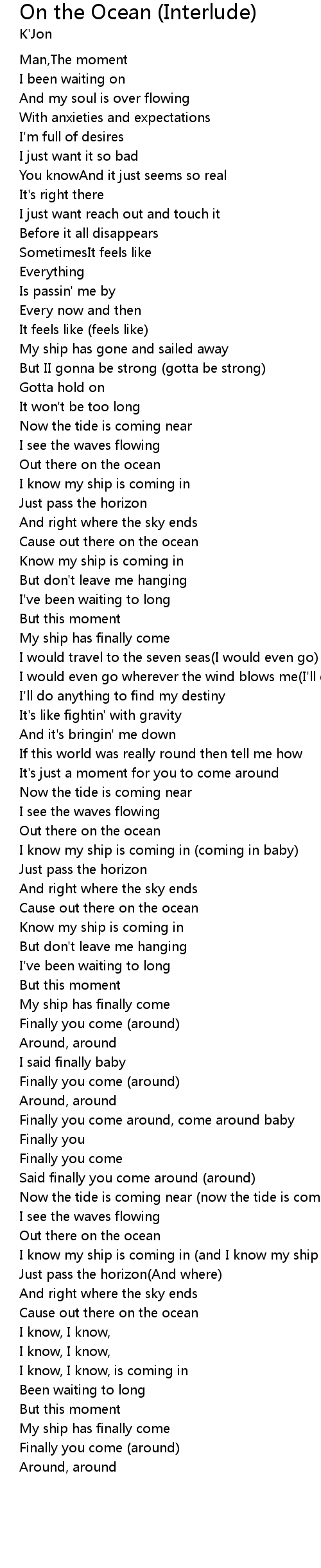 I know my ship is coming in (and I know my ship is coming in baby) |