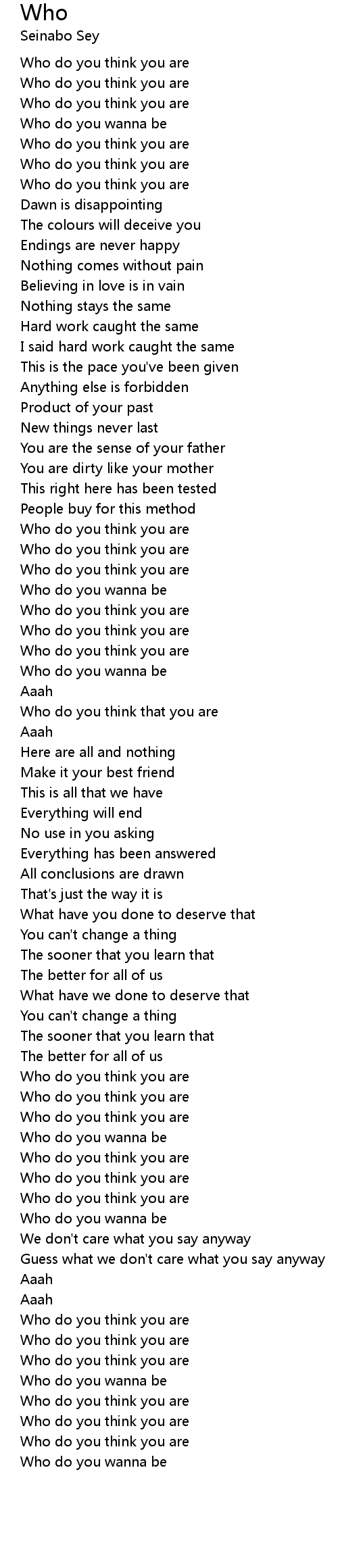 [02:38.96] Who do you think you are