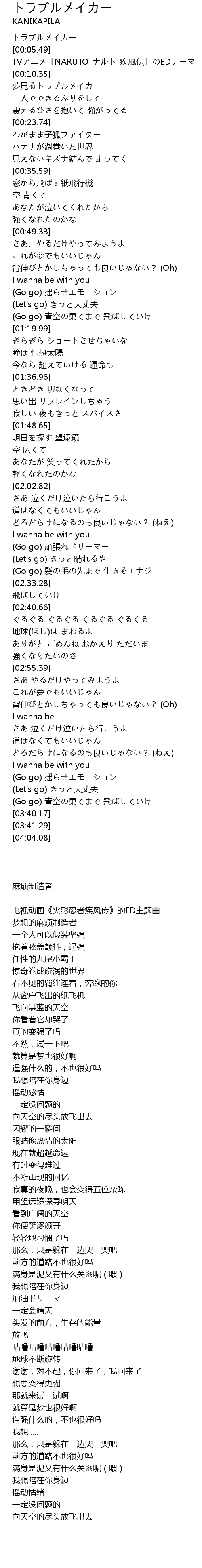 | [00:06.55] | TV NARUTO ji feng chuan ED |