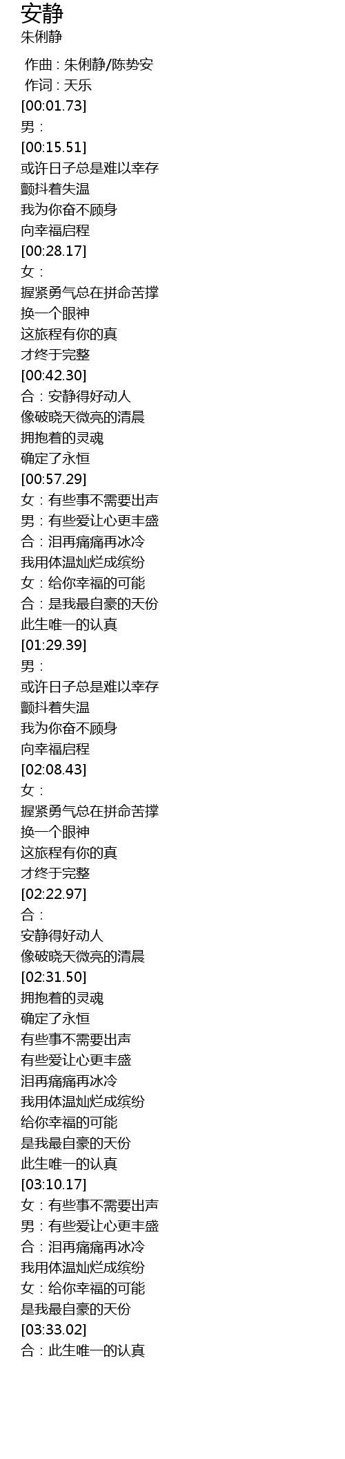 | [00:00.00] | 作曲 : 朱俐静/陈势安 |