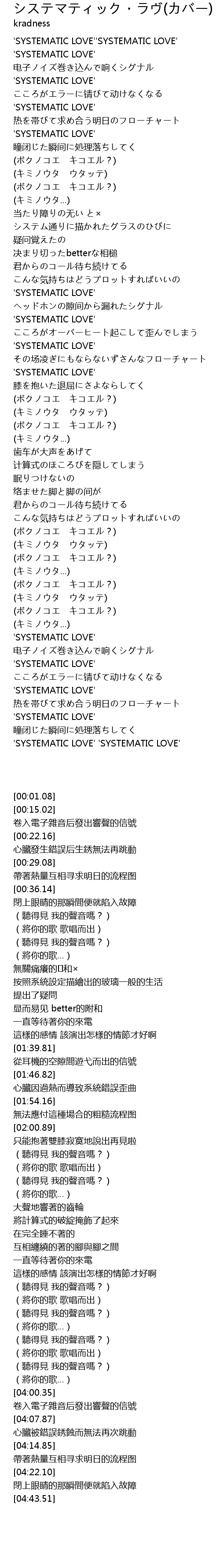 | [04:43.51] | ' SYSTEMATIC LOVE' ' SYSTEMATIC LOVE' |