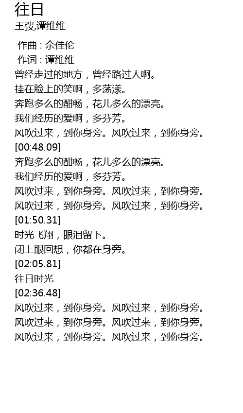 | [01:36.31] | 风吹过来,到你身旁。风吹过来,到你身旁。 |