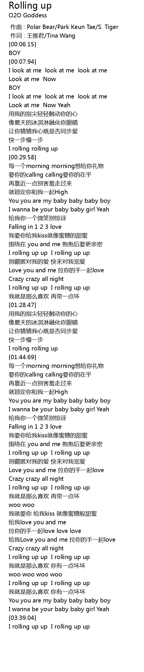 | [01:42.89] | I rolling rolling up |