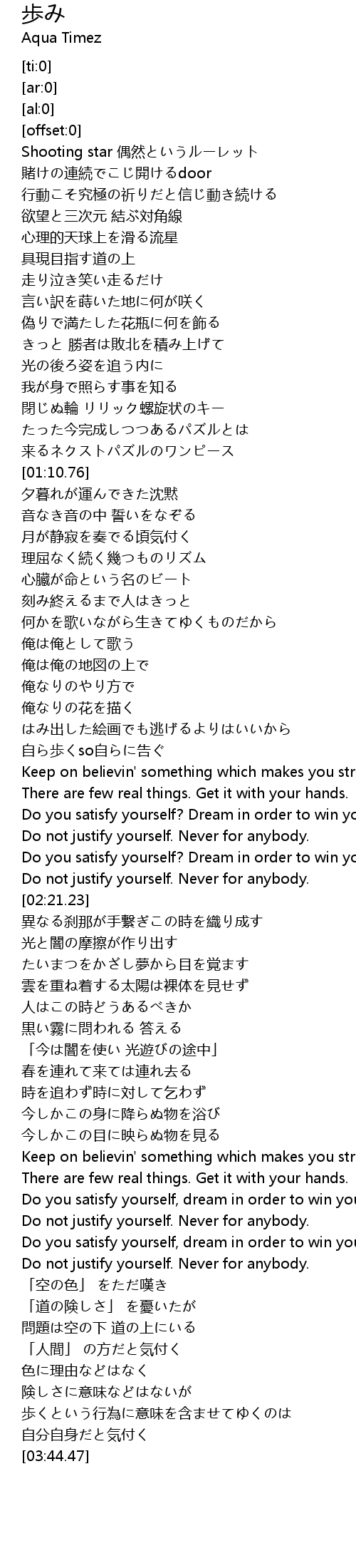 | [00:40.23] | 行動こそ究極の祈りだと信じ動き続ける |