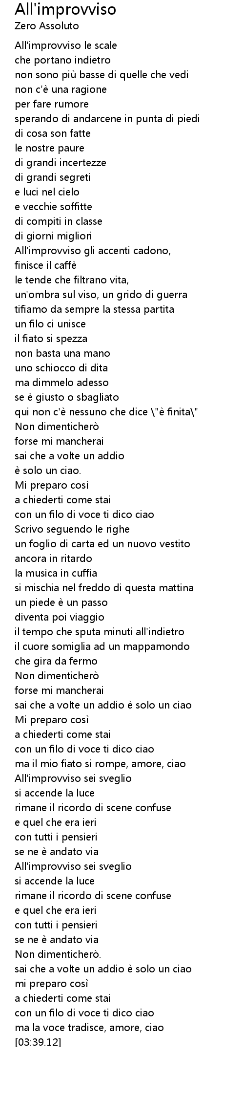 | [03:31.58] | ma la voce tradisce, amore, ciao |