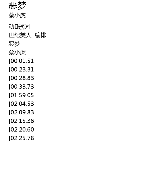| [02:57.94][02:04.53][00:49.95] | 爱情若一场恶梦 |