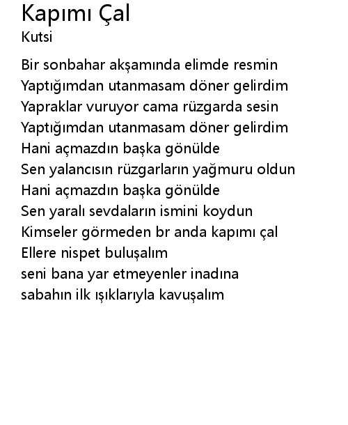 | Kimseler görmeden br anda kapımı çal | |