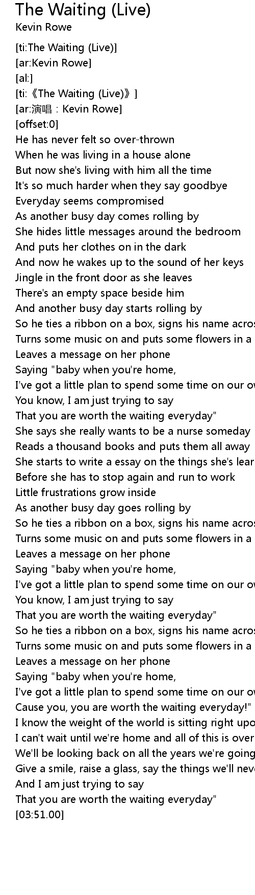 | [03:06.17] | Cause you, you are worth the waiting everyday!" |