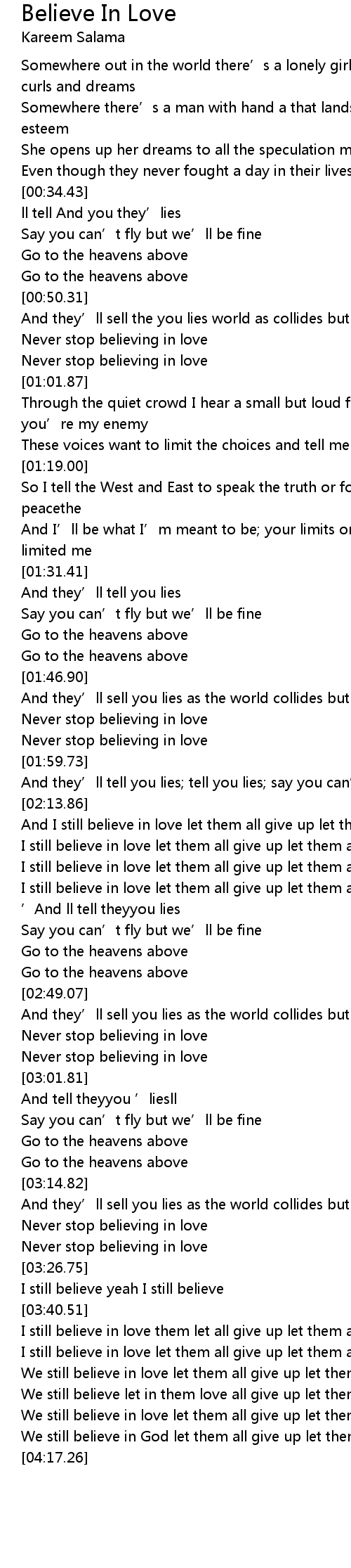 | [03:54.86] | We still believe in love let them all give up let them all give up |