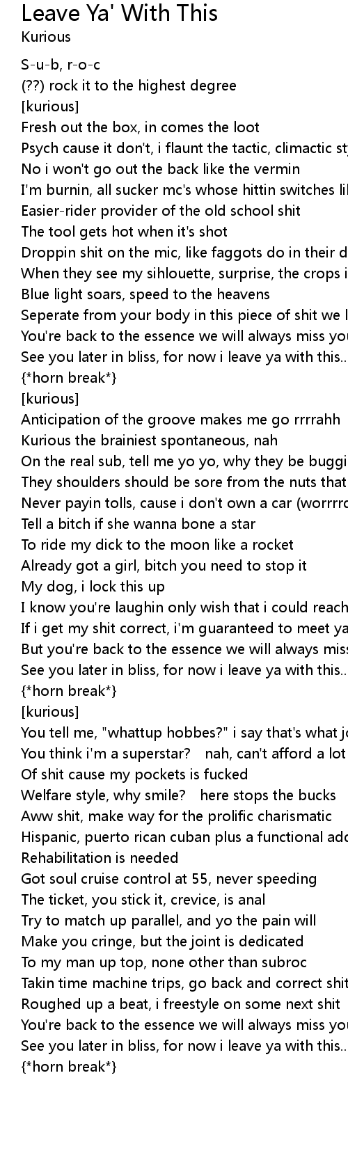 | Droppin shit on the mic, like faggots do in their drawers | |