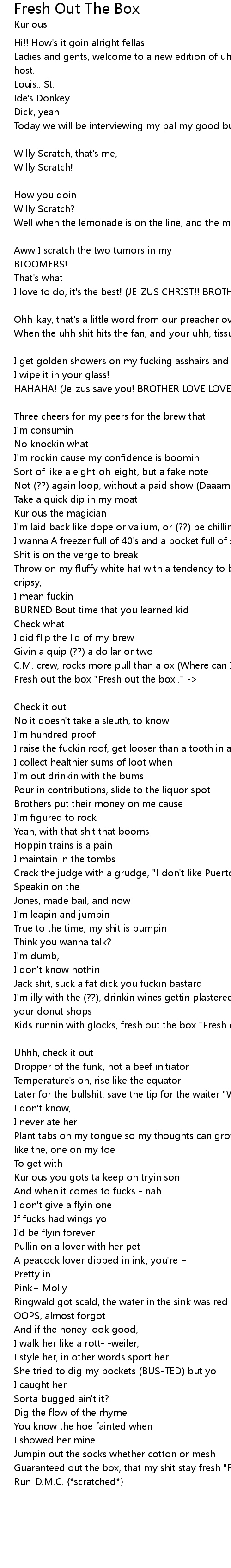 Guaranteed out the box, that my shit stay fresh "Fresh out the box.." -> |
