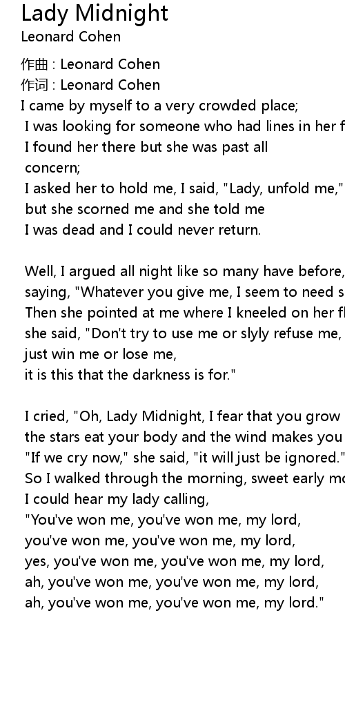 | 歌曲 | Lady Midnight |