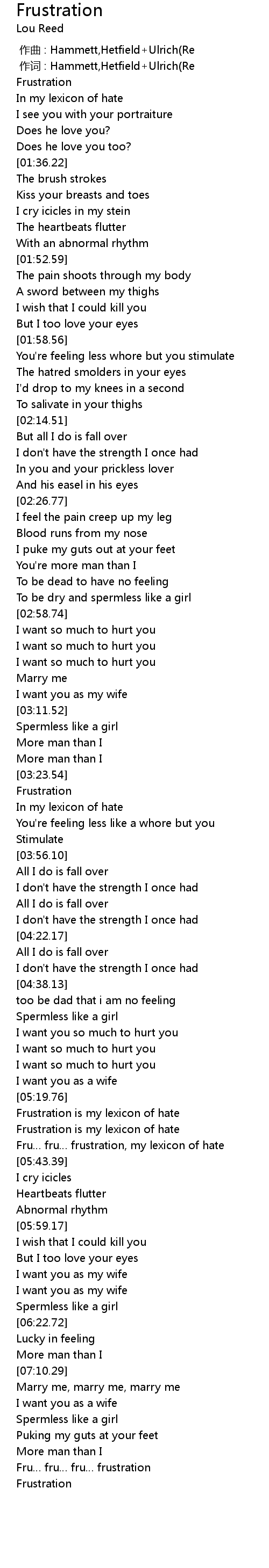 | [05:37.23] | Fru… fru… frustration, my lexicon of hate |