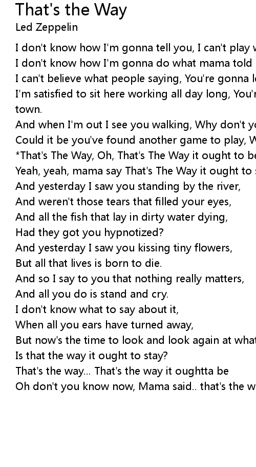 *That's The Way, Oh, That's The Way it ought to be, |