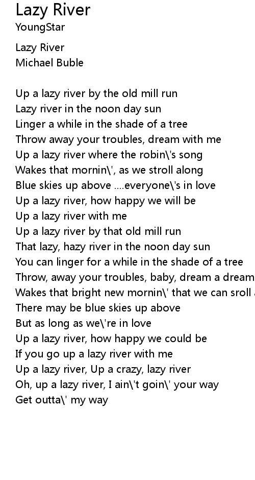 Up a lazy river where the robin\'s song |