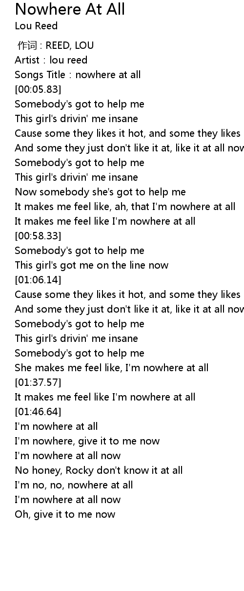 | [00:49.52] | It makes me feel like I'm nowhere at all |