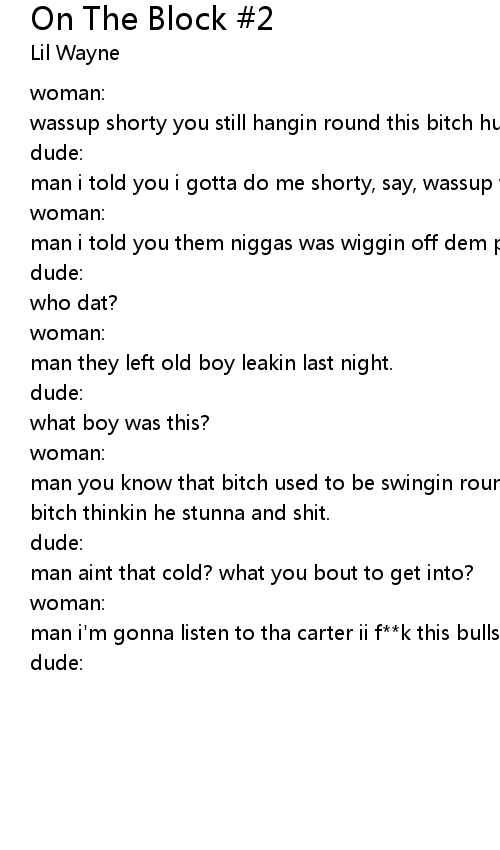 man i'm gonna listen to tha carter ii f**k this bullshit |