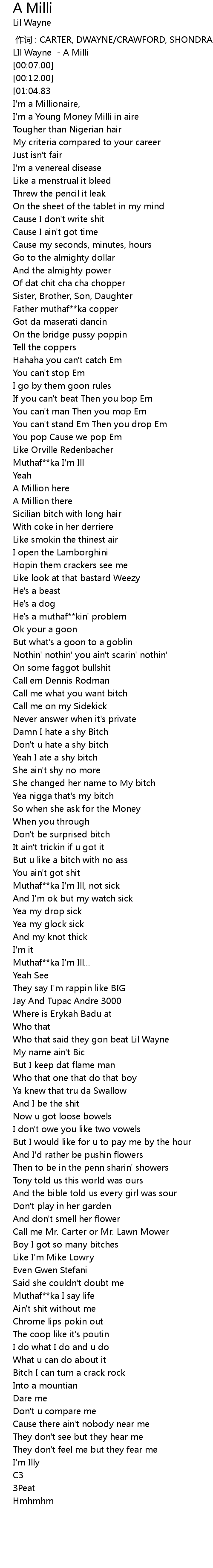 | [00:02.00] | LIl Wayne A Milli |