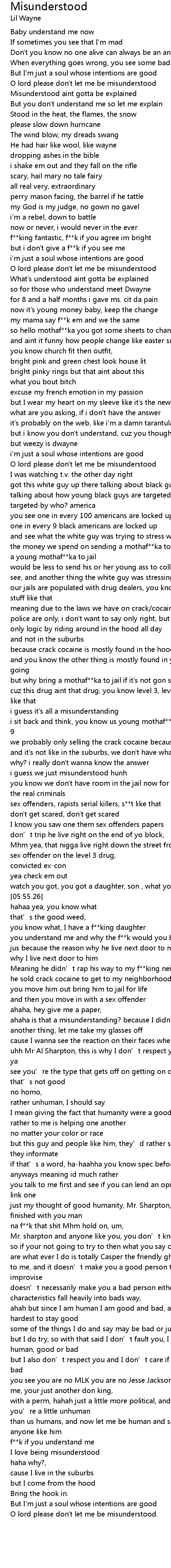| [00:43.53] | Misunderstood aint gotta be explained |