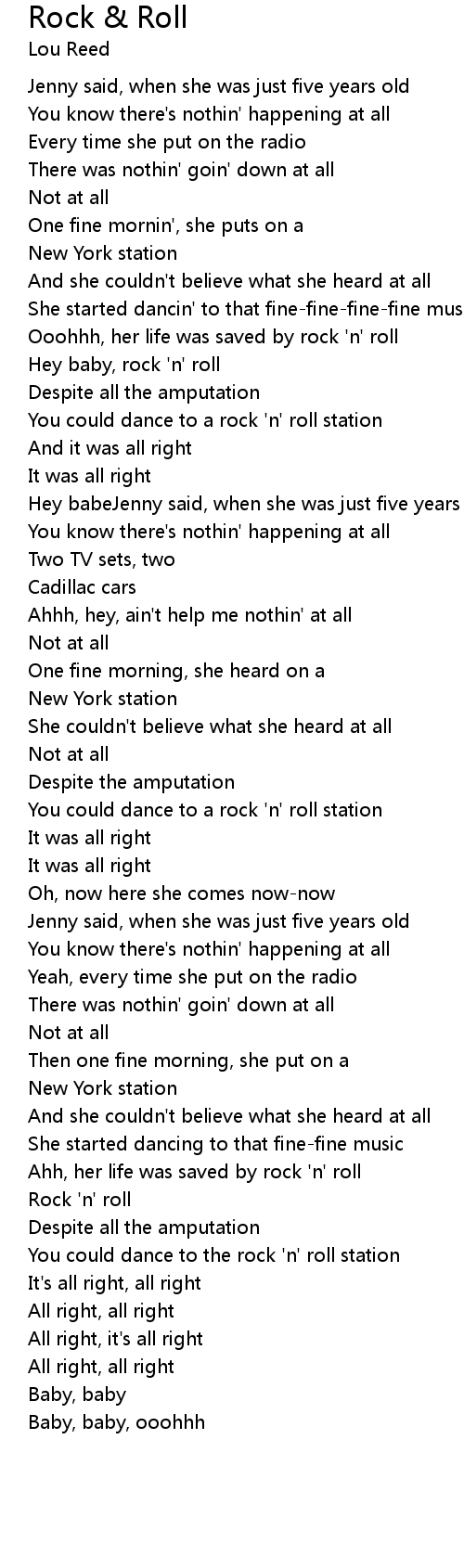 Ooohhh, her life was saved by rock 'n' roll |