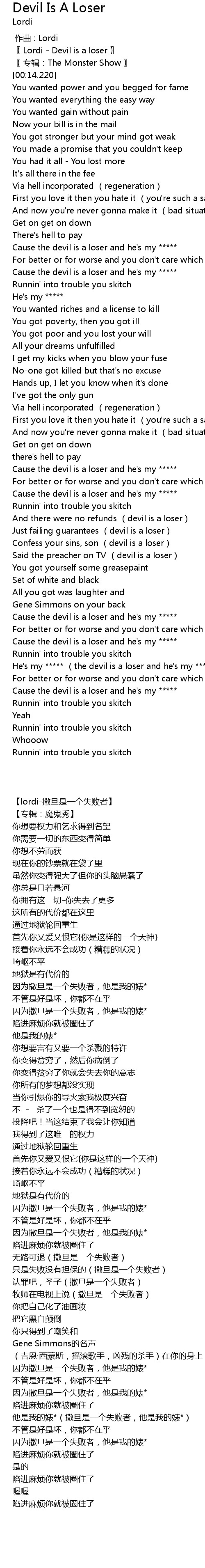 | [00:00.00] | 【lordi-撒旦是一个失败者】 |