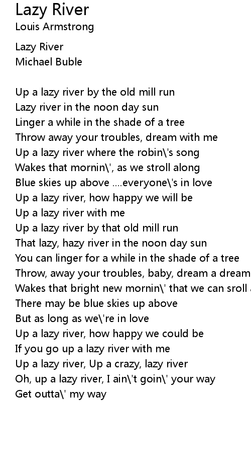 Up a lazy river where the robin\'s song |