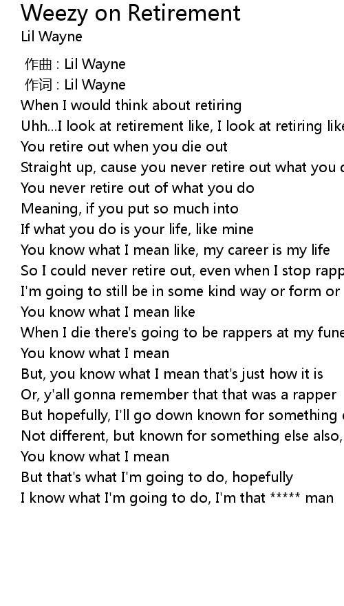 | 歌曲 | Weezy on Retirement |