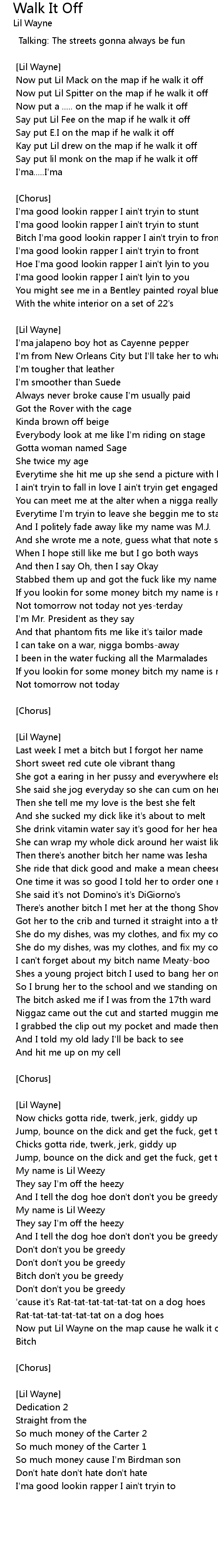 Now put Lil Wayne on the map cause he walk it off (ha ha ha ha) |