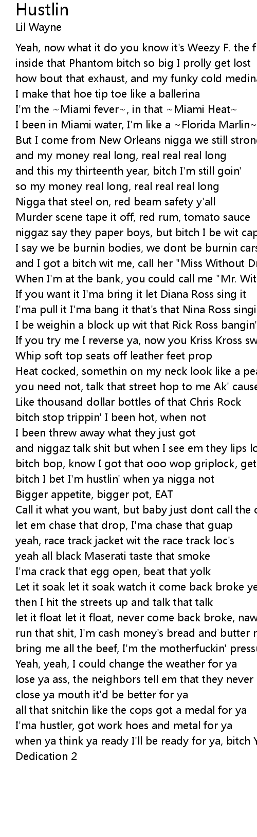 Yeah, now what it do you know it's Weezy F. the fuckin boss |