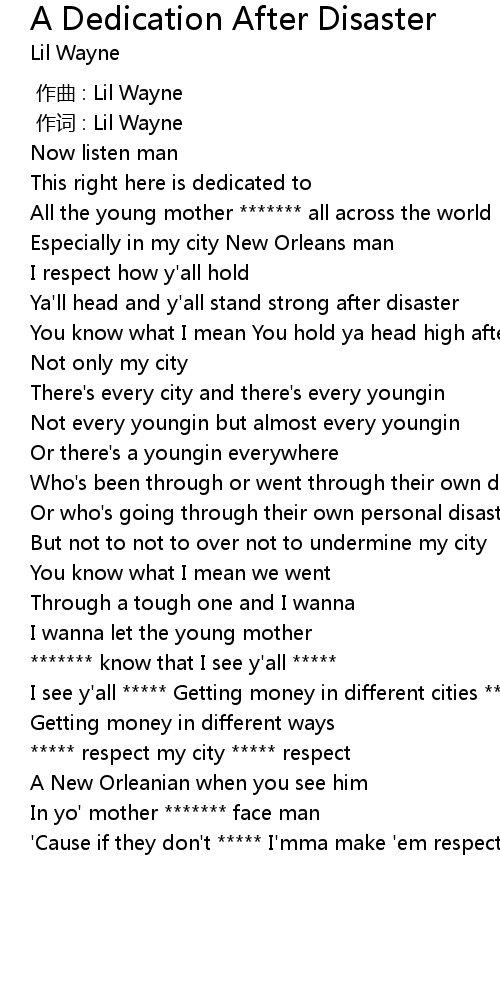 | [00:00.006] | 作词 : Lil Wayne |