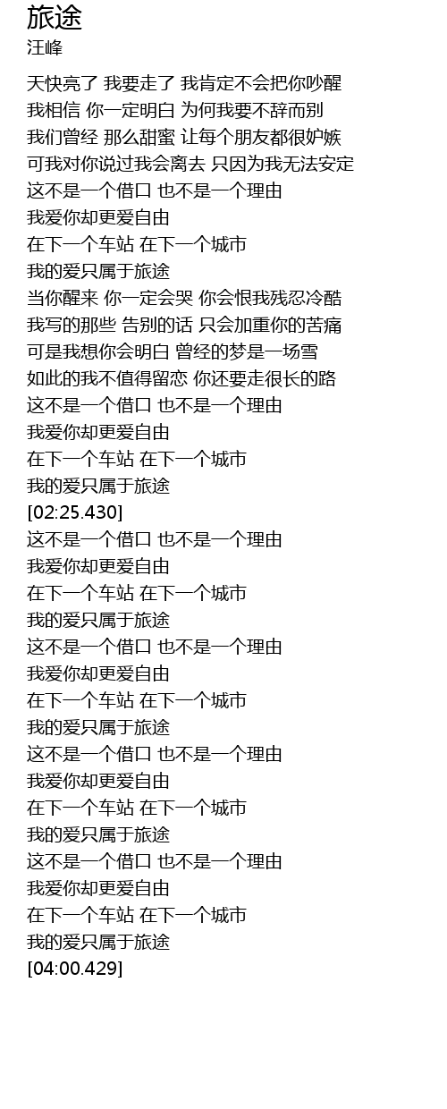 | [01:22.500] | 在下一个车站 在下一个城市 |