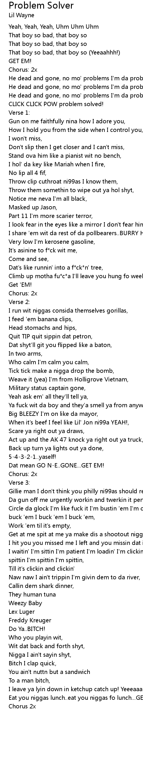 He dead and gone, no mo' problems I'm da problem solva,(Yeah) |